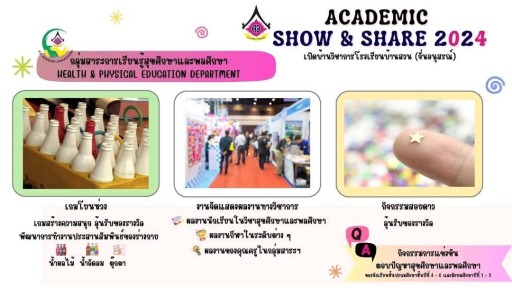 วันที่ 7 กุมภาพันธ์ 2568 นายวินัย คุ้มครอง นายกองค์การบริหารส่วนตำบลบ้านเก่า คณะกรรมการสถานศึกษา ได้ให้เกียรติเป็นประธานในการเปิดงาน กิจกรรม Academic Show & Share’2024 โดยมีการจัดนิทรรศการทางวิชาการ,นิทรรศการและการนำเสนอโครงงาน IS ระดับม.2 และม.5 ,กิจกรรมงานขาย และการแข่งขันทักษะทางวิชาการ ณ อาคาร ร่มสนนฤมิต