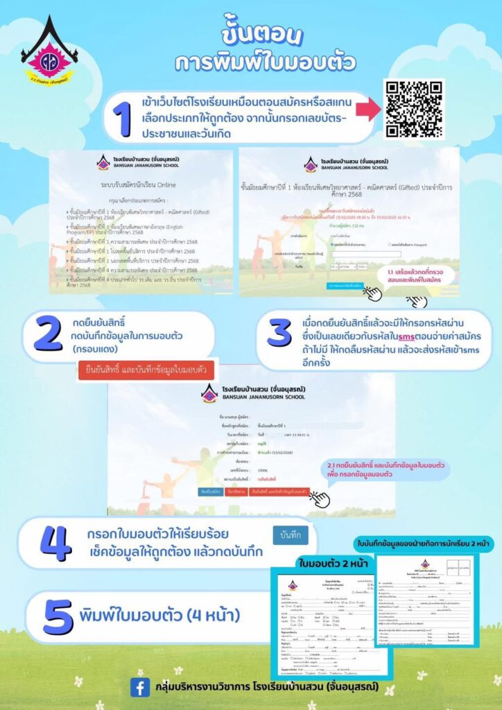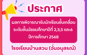 ประกาศรายชื่อนักเรียนที่สอบผ่าน เข้าเรียนต่อชั้นมัธยมศึกษาปีที่ 1 ปีการศึกษา 2568 โรงเรียนบ้านสวน (จั่นอนุสรณ์)