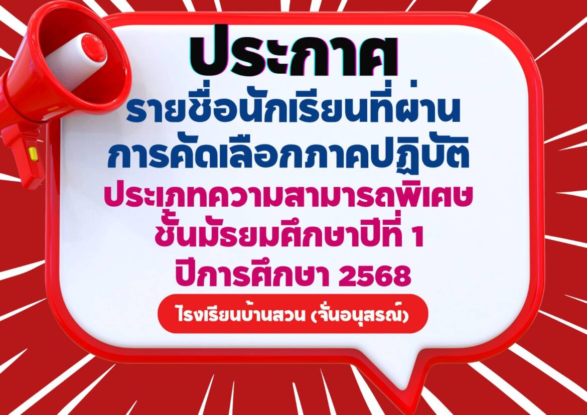 ประกาศรายชื่อนักเรียนที่ผ